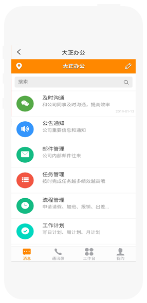 大正OA辦公管理系統(tǒng)功能豐富,主要包括:系統(tǒng)管理、角色管理、用戶管理、考勤管理、流程管理、公告通知、郵件管理、任務(wù)管理、日程管理、工作計劃、文件管理、筆記管理、車輛管理、財務(wù)管理、通訊錄、討論區(qū)、工作流、企業(yè)通、便簽等等,還有多種顏色皮膚可以切換。以前我們用的是基于SaaS的在線辦公管理系統(tǒng),數(shù)據(jù)放到別人的服務(wù)器里面您會安心嗎,大正OA最重要的是數(shù)據(jù)都存儲到自己的服務(wù)器里了。