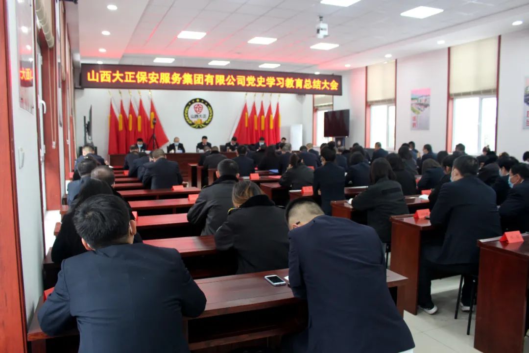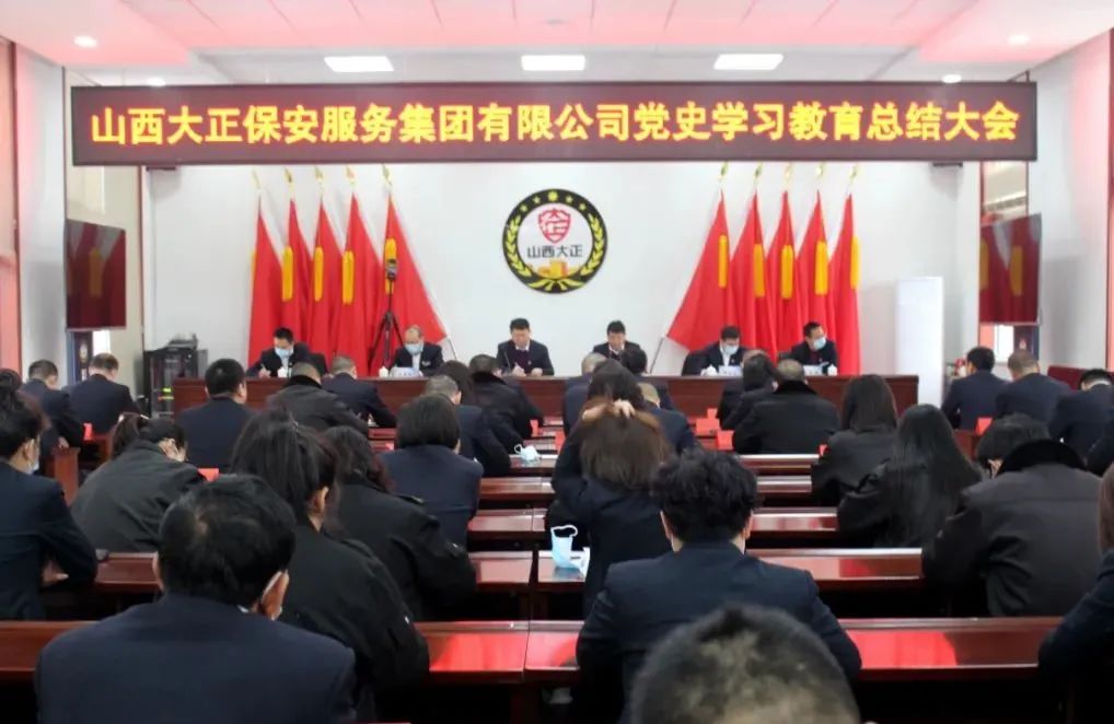 2022年1月24日上午,山西大正保安服務(wù)集團(tuán)有限公司召開(kāi)黨史學(xué)習(xí)教育總結(jié)大會(huì)。會(huì)議深入貫徹落實(shí)習(xí)近平總書記重要指示精神和黨史學(xué)習(xí)教育總結(jié)會(huì)議精神,全面總結(jié)了一年來(lái)公司黨史學(xué)習(xí)教育工作開(kāi)展情況,并對(duì)公司今后進(jìn)一步拓展黨史學(xué)習(xí)教育成果做出了部署,指明了方向。集團(tuán)公司黨委副書記、總經(jīng)理趙培宏主持會(huì)議并作總結(jié)講話。黨委副書記、副總經(jīng)理陳志平出席會(huì)議并作公司黨史學(xué)習(xí)教育總結(jié)報(bào)告。公司領(lǐng)導(dǎo)班子成員、各單位、各分公司負(fù)責(zé)人、機(jī)關(guān)全體職工參加大會(huì)。