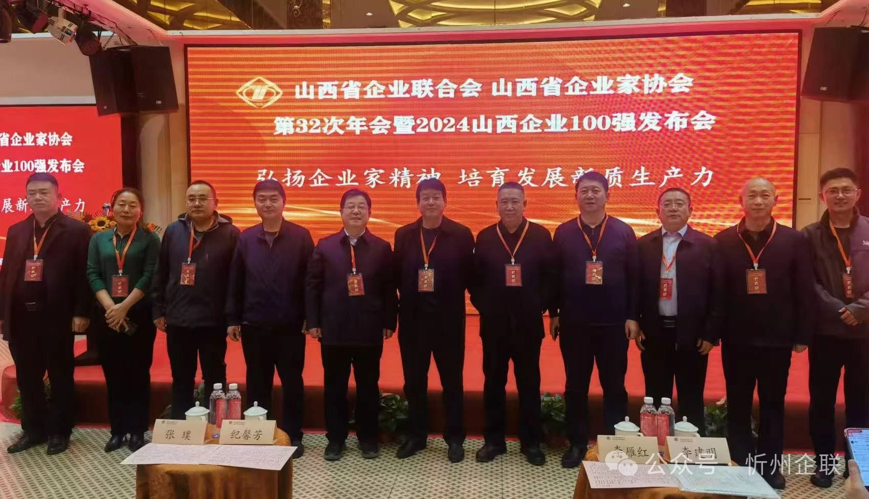 山西企聯(lián)第32次年會暨2024山西企業(yè)100強發(fā)布會于11月22日在太原市大昌國際酒店召開。會議以“弘揚優(yōu)秀企業(yè)家精神,培育發(fā)展新質生產(chǎn)力”為主題。山西企聯(lián)名譽會長、省人大原黨組書記、常務副主任紀馨芳,山西企聯(lián)顧問、省政府原副主席李雁紅,山西企聯(lián)顧問、省政協(xié)原副主席張璞,中國企聯(lián)副秘書長李建明等領導和500余名企業(yè)代表出席了會議。忻州市二十家企業(yè)上榜 ,忻州企聯(lián)會長陳志平率隊參會。