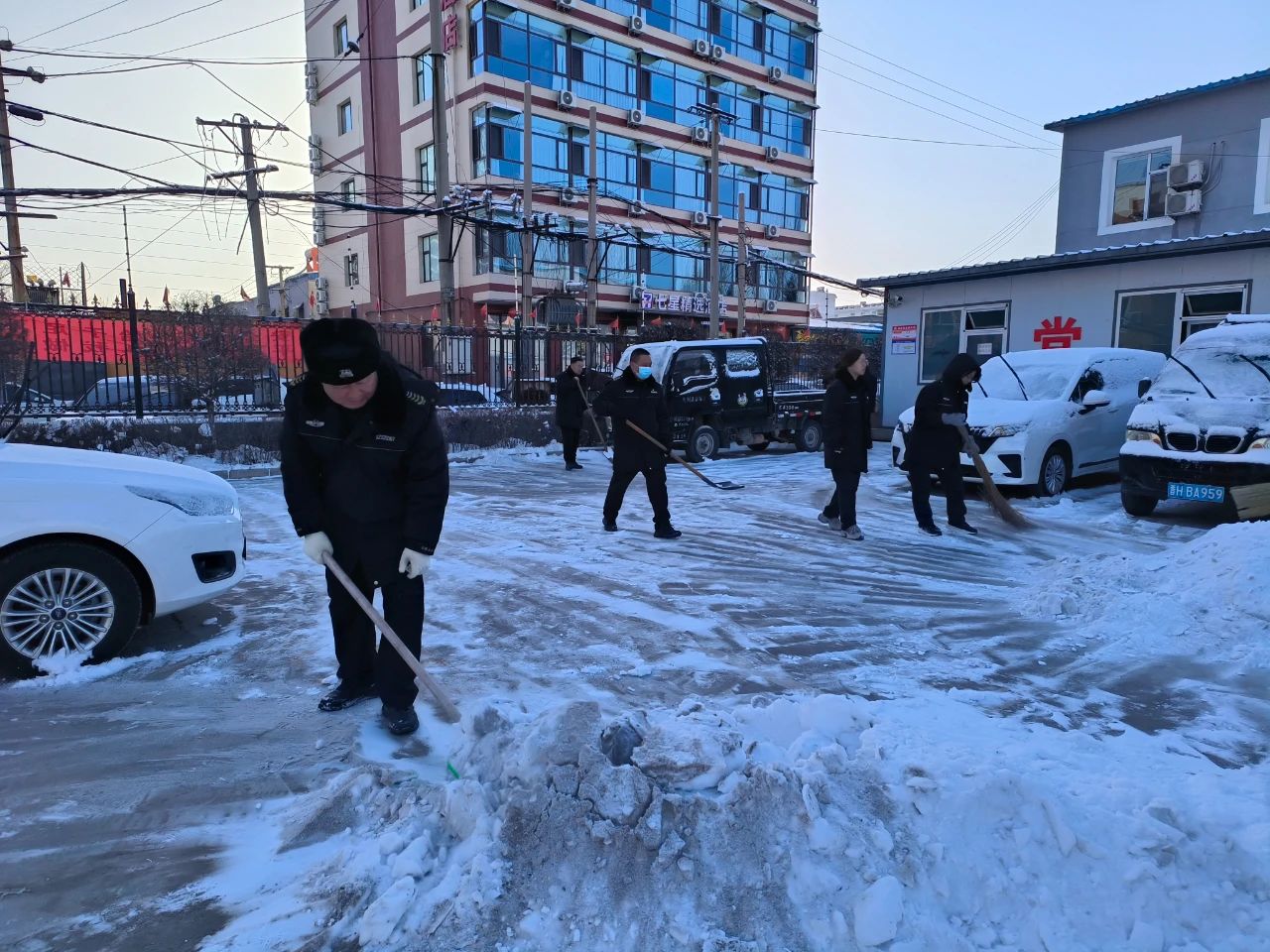 清掃積雪的工作看似簡單,卻充滿了挑戰(zhàn)。積雪已經(jīng)結(jié)成厚厚的冰層,路面濕滑,每一步都需要小心翼翼。盡管如此,保安隊(duì)伍從不畏懼嚴(yán)寒和困難,始終保持著高度的責(zé)任感,認(rèn)真負(fù)責(zé)地完成任務(wù)。無論是周邊的道路,還是進(jìn)出頻繁的停車場,哪里有積雪,哪里就有我們忙碌的身影。在大家的努力下積雪很快被清理干凈,確保了每條道路暢通無阻,為客戶單位提供了一個(gè)安全、便捷的環(huán)境,為市民的安全出行保駕護(hù)航。