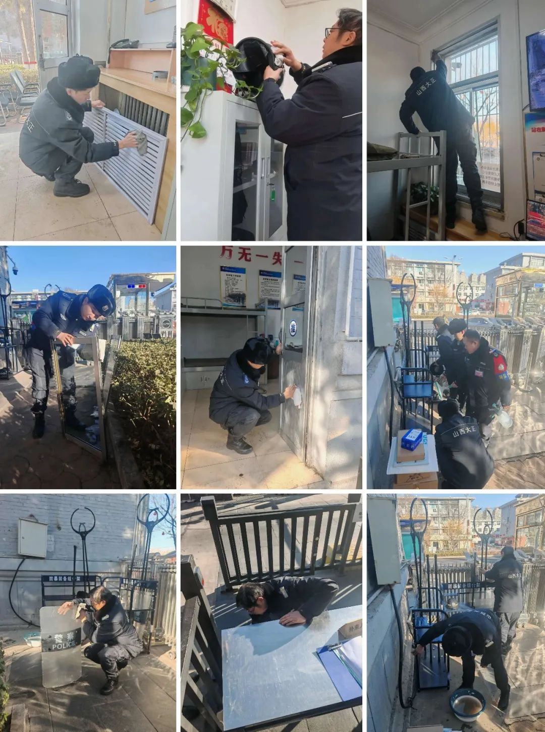 連日來,山西大正保安服務集團公司各值勤崗點在保質(zhì)保量做好本職安保工作的基礎(chǔ)上,自覺從各自駐勤點綜合環(huán)境情況出發(fā),主動利用空余時間開展衛(wèi)生大掃除活動,著重對執(zhí)勤門衛(wèi)室、崗亭周邊、窗戶窗臺、道桿道閘以及消防防暴器材等區(qū)域、設施進行了清掃和整理。