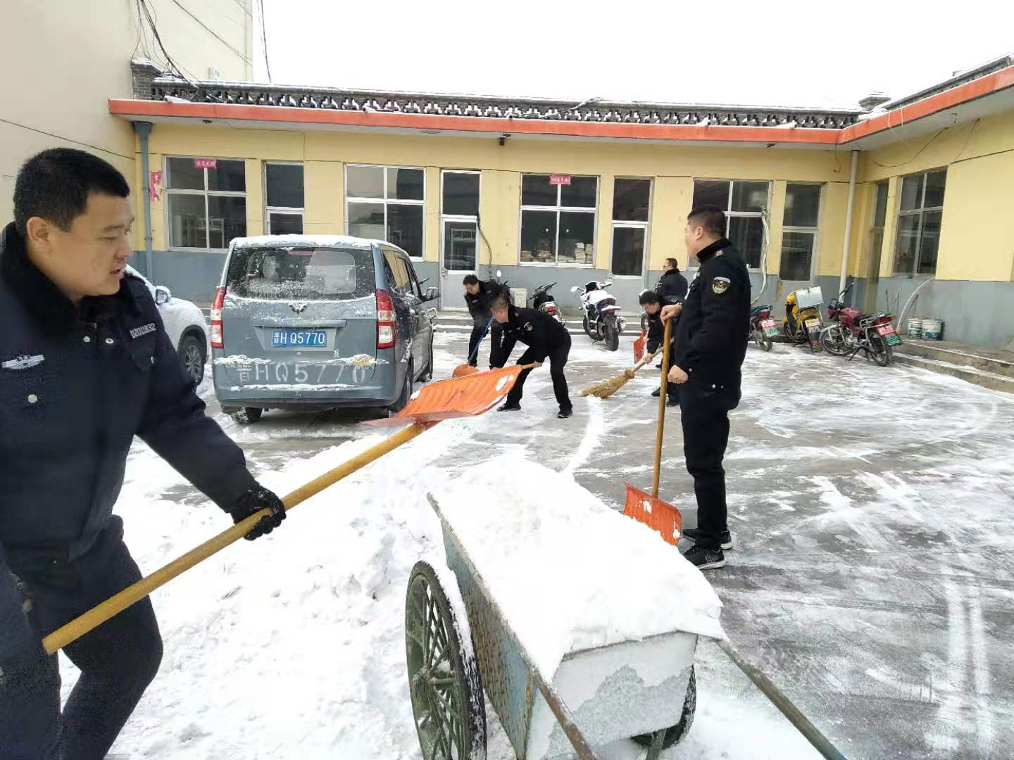 11月30日,氣溫驟降,偏關(guān)縣迎來了一場大雪,鵝毛般的雪花紛紛揚(yáng)揚(yáng),厚厚的白雪覆蓋了全中隊(duì),給隊(duì)員出行帶來不便。為保障中隊(duì)安全生產(chǎn)和隊(duì)員安全出行,組織全體隊(duì)員開展積雪清除活動。