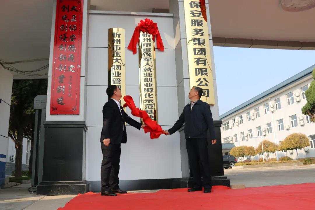 忻州市退役軍人事務(wù)局張培觀副局長和山西大正保安服務(wù)集團有限公司黨委副書記、總經(jīng)理趙培宏共同為基地揭牌。