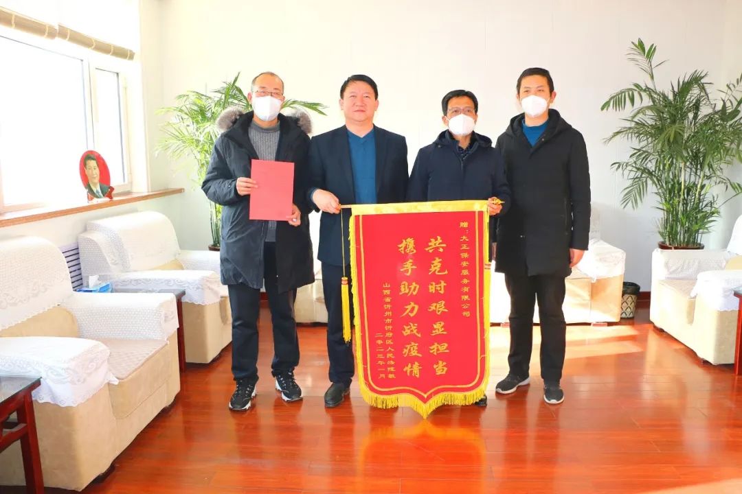 1月9日上午,忻府區(qū)法院黨組成員、副院長黃偉,黨組成員、政治部主任焦旭林帶著寫有“共克時艱顯擔當 攜手助力戰(zhàn)疫情”的錦旗和一封感謝信來到了山西大正保安服務(wù)集團有限公司,表達對保安公司在疫情防控中無私無畏、甘愿付出的誠摯謝意。大正保安集團公司黨委副書記、總經(jīng)理趙培宏、黨委委員、副總經(jīng)理王明生接洽。自2022年11月6日忻府區(qū)突發(fā)疫情以來,山西大正保安服務(wù)集團有限公司駐忻府區(qū)法院勤務(wù)點的隊員們在陳曉東隊長的帶領(lǐng)下,積極響應(yīng)疫情防控各項要求,除在保障法院關(guān)鍵時期平穩(wěn)運行外,保安公司職員還能夠挺身而出,積極投身防疫點值守、后勤保障、車輛運行、機關(guān)防疫消殺等方面,以實際行動為忻府區(qū)法院疫情防控及機關(guān)安保工作做出了突出貢獻。越是緊要關(guān)頭,越能映照初心;越在關(guān)鍵時刻,越顯擔當使命。面對突如其來的疫情“大考”,大正保安集團積極響應(yīng)號召,主動、迅速地配合我院防疫部署,精心服務(wù)群眾、嚴格執(zhí)行命令、防范意識到位,助力織密織牢疫情防控網(wǎng),充分展示了大正保安人的職業(yè)素養(yǎng)與責任擔當。幾年來,山西大正保安服務(wù)集團有限公司駐區(qū)法院全體職員,以法院為家,服從工作需要,積極參與各項審判事業(yè),做到聞令而動,成為不可或缺的中堅力量,為法院跨越式發(fā)展提供了巨大支持。