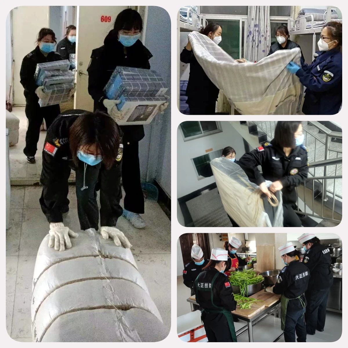 在這場(chǎng)沒有硝煙的戰(zhàn)爭(zhēng)中,大正的鏗鏘玫瑰們聽從公司指揮、勇毅“逆行”。在接到抗疫任務(wù)的第一時(shí)間便趕回工作崗位,得知需要24小時(shí)備戰(zhàn)執(zhí)勤時(shí),她們和其他男同志一樣默默接受,沒有任何怨言。雖然她們已身為人妻人母,但是為了疫情防控的需要,她們選擇了和家人暫時(shí)的分離,無(wú)法顧及家里人的生活,一心抗疫。她們有的是辦公室人員、有的是監(jiān)控人員、有的是技防人員、有的是勤務(wù)指揮中心人員,她們都是普通的工作人員,家中有年邁的父母、年幼的孩子,有付出,也有虧欠......但面對(duì)疫情,她們做出了相同的選擇——那就是挺身而出,迎難而上,她們說(shuō):“既然選擇作為大正的保安,我們就要像其他男同事一樣沖鋒陷陣。”她們用實(shí)際行動(dòng)詮釋著大正人的奮勇向前,彰顯了堅(jiān)韌不拔的巾幗風(fēng)采。