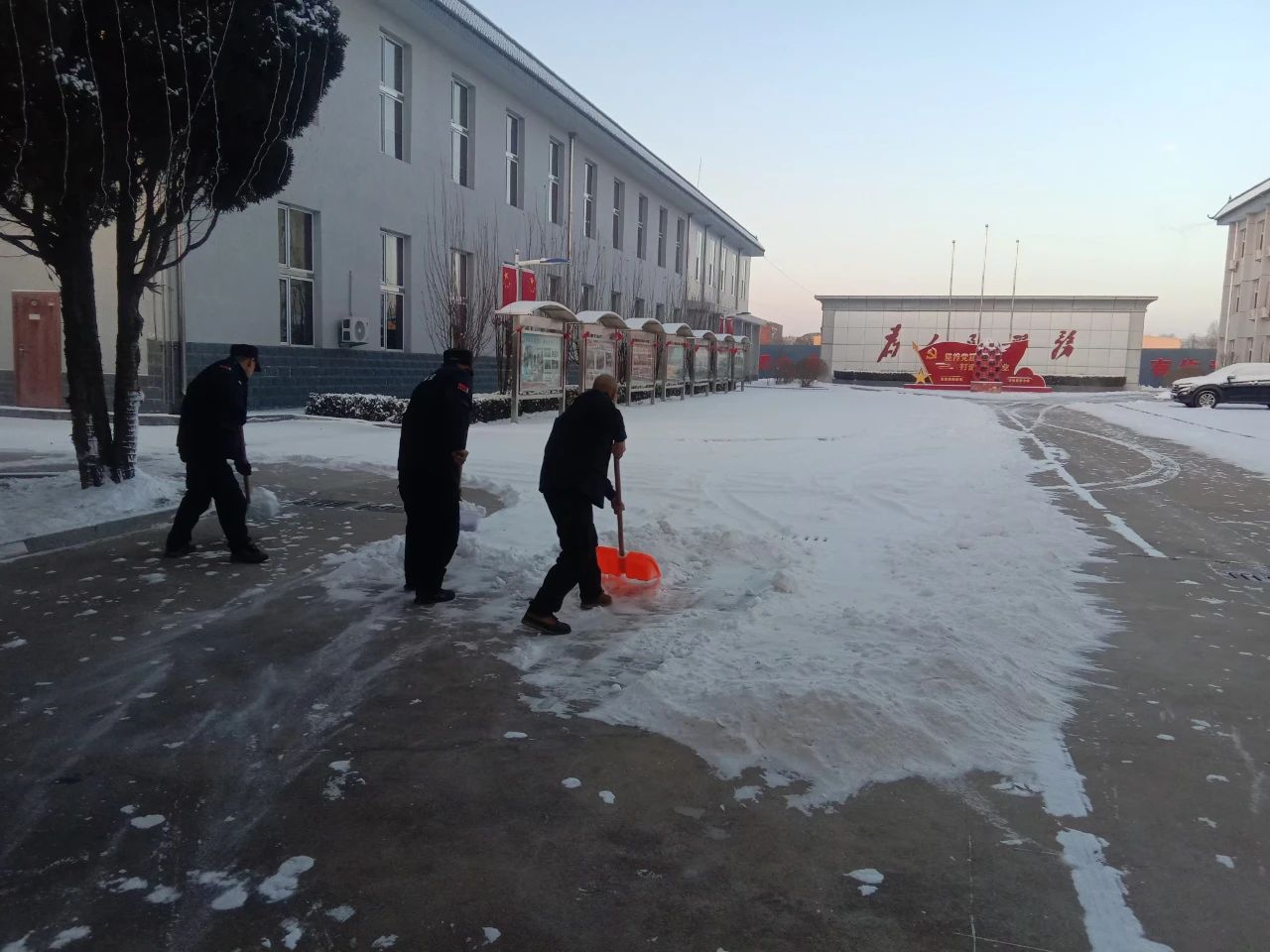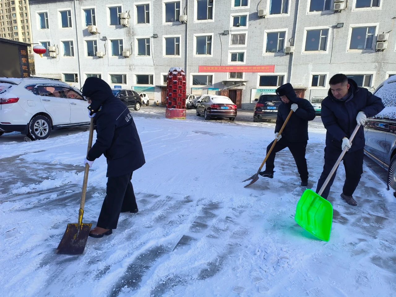 清掃積雪的工作看似簡單,卻充滿了挑戰(zhàn)。積雪已經(jīng)結(jié)成厚厚的冰層,路面濕滑,每一步都需要小心翼翼。盡管如此,保安隊(duì)伍從不畏懼嚴(yán)寒和困難,始終保持著高度的責(zé)任感,認(rèn)真負(fù)責(zé)地完成任務(wù)。無論是周邊的道路,還是進(jìn)出頻繁的停車場,哪里有積雪,哪里就有我們忙碌的身影。在大家的努力下積雪很快被清理干凈,確保了每條道路暢通無阻,為客戶單位提供了一個(gè)安全、便捷的環(huán)境,為市民的安全出行保駕護(hù)航。