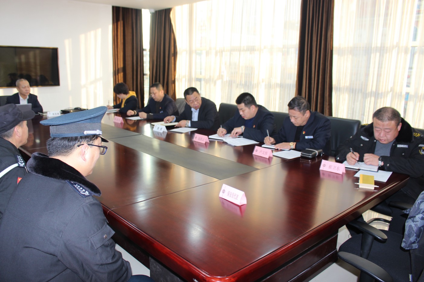 1月19日,集團公司與中國銀行股份有限公司忻州市分行在忻州市分行三樓會議室召開聯(lián)席會。集團公司董事長助理、守押公司副總經(jīng)理寇星云、忻州市分行紀委書記賀模出席。會議由中國銀行忻州分行監(jiān)察保衛(wèi)部主任杜宏斌主持。忻州市保安服務公司副總經(jīng)理盧文偉及守押、技防等相關業(yè)務負責人參會。