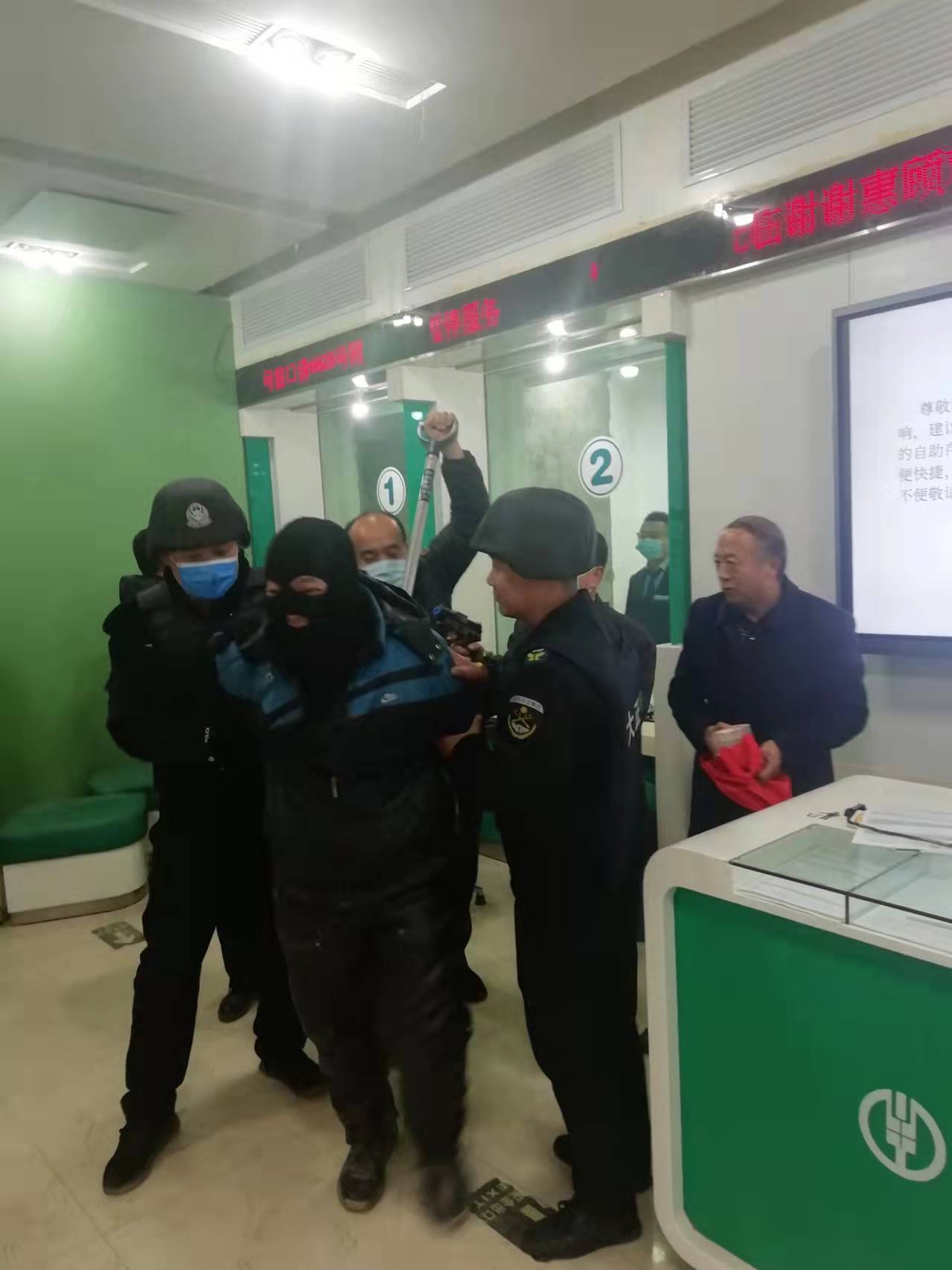 防搶劫演練在農(nóng)行網(wǎng)點(diǎn)按計(jì)劃開(kāi)展,押運(yùn)人員在“歹徒”搶劫時(shí),臨危不懼,勇敢上前與之搏斗。最終,在大家的共同努力下,制服了“歹徒”。