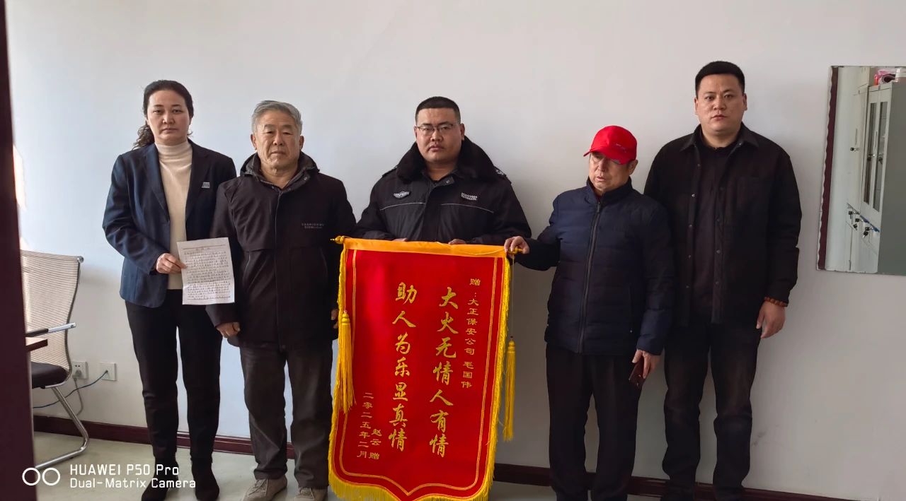 2025年2月25日上午,忻州市保安服務(wù)公司迎來感人一幕:兩位六旬老人手捧一面繡有“大火無情人有情,助人為樂顯真情”的錦旗和一封情真意切的感謝信,對(duì)公司保安員毛國偉的英勇行為進(jìn)行表彰。